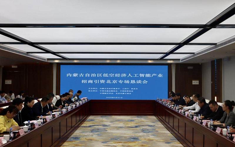 4月21日上午,自治区商务厅联合自治区工业和信息化厅、自治区人民政府驻北京办事在北京举行内蒙古低空经济与人工智能重点产业集群专场招商恳谈会,近50家相关商协会企业代表参加会议。