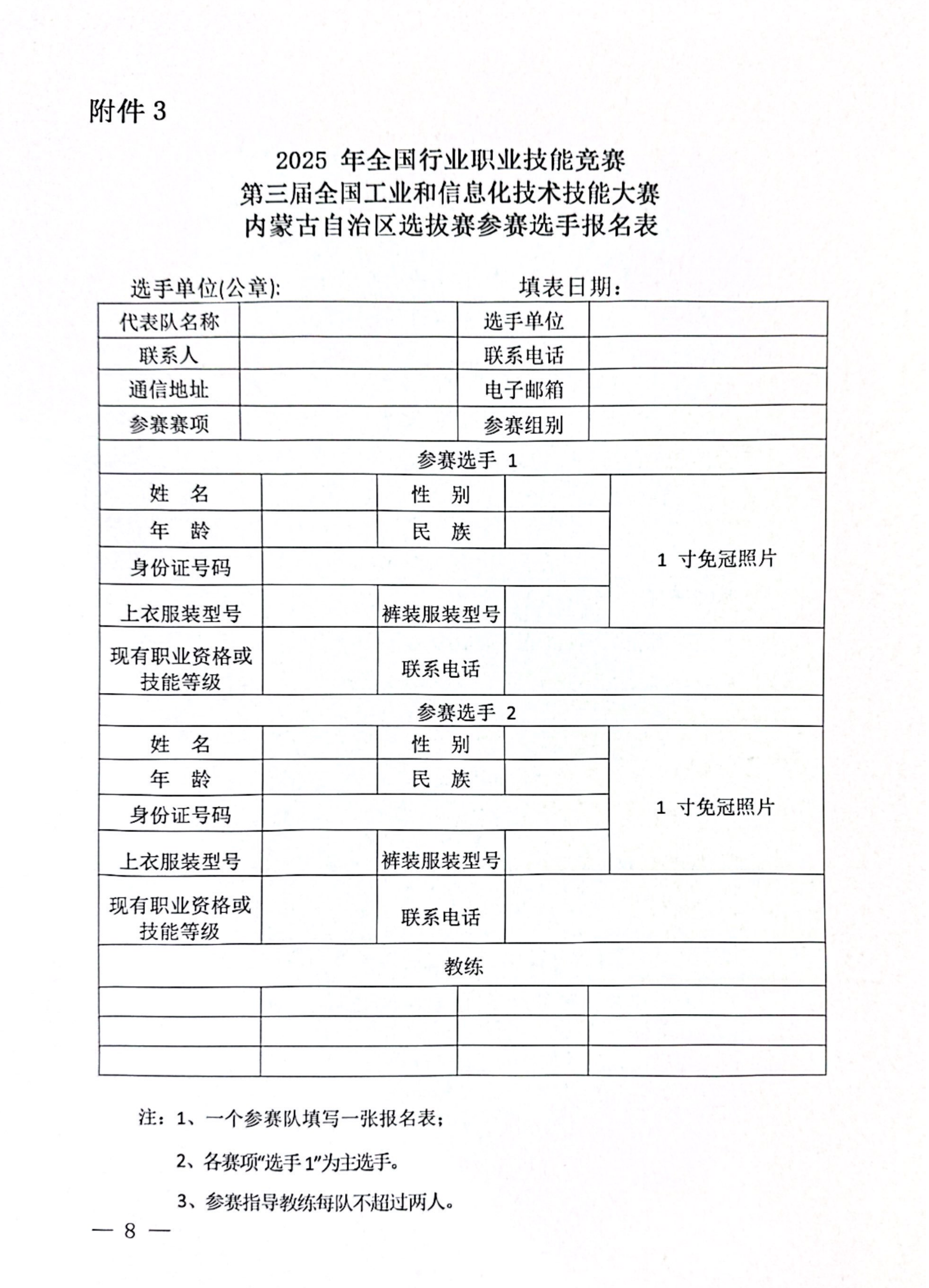 关于举办第三届全国工业和信息化技术技能大赛内蒙古选拔赛的预通知
